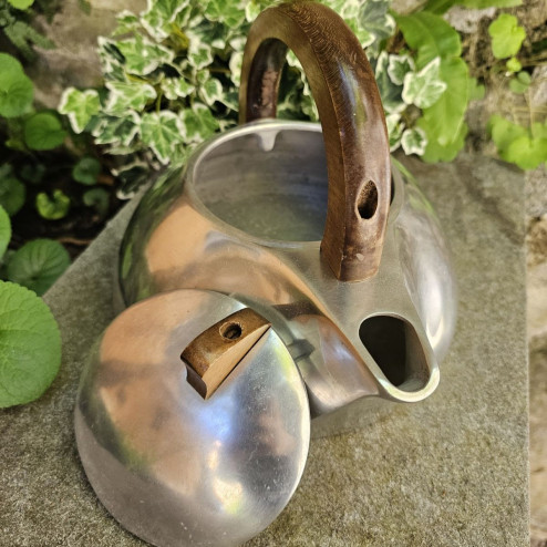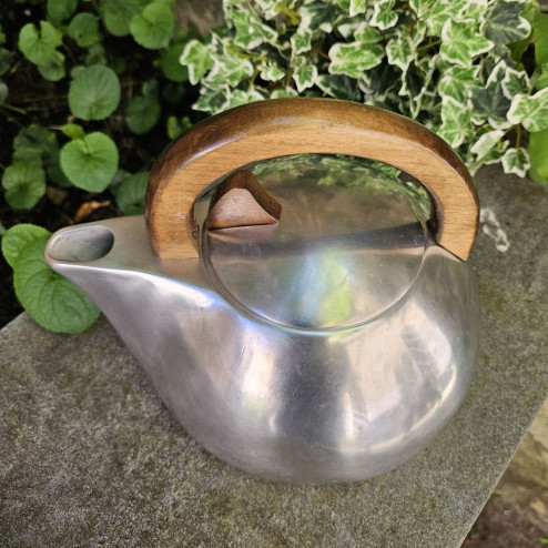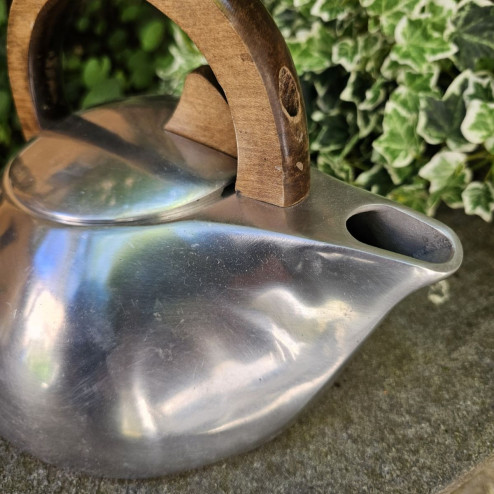 Bollitore modello K3 Picquot Ware prodotto in Inghilterra da Burrage & Boyd. Realizzato in Magnalium con manico e pomello in legno di sicomoro. Design moderno tipico della produzione inglese del dopoguerra. Anni 60, ottime condizioni.