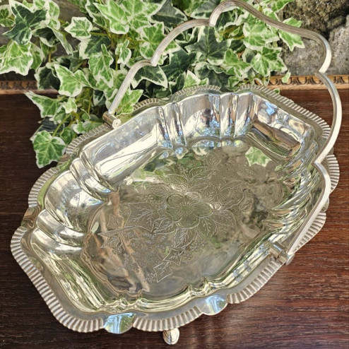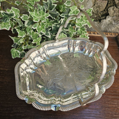 un manico basculante lavorato a scanalature, tipico dei cestini da tavola vittoriani;