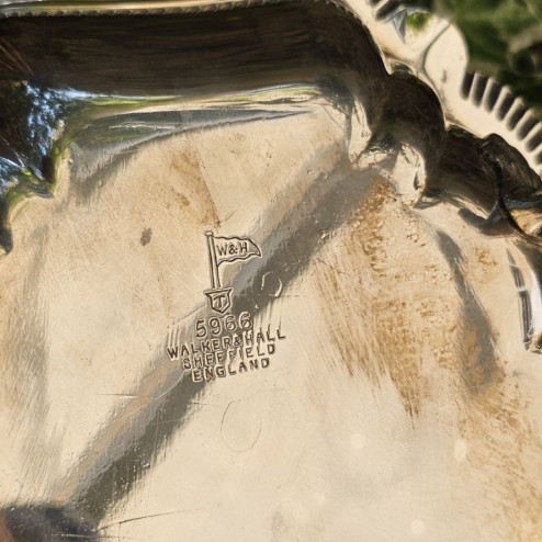 Questo raffinato cestino inglese in sheffield plate è una creazione della prestigiosa manifattura Walker & Hall, attiva a Sheffield tra la fine dell’Ottocento e i primi del Novecento. Realizzato tra il 1885 e il 1908, è un oggetto d’epoca dalla linea sobria ed elegante.