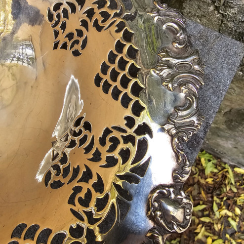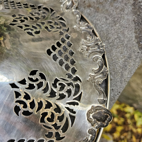 Alzatina in sheffield plate con piatto traforato, prodotta negli anni '30 dalla celebre manifattura inglese Mappin & Webb.