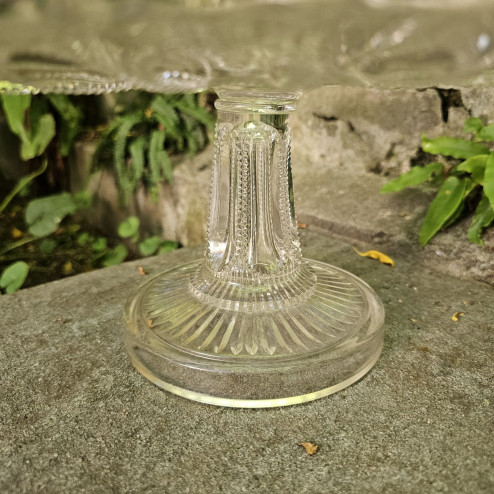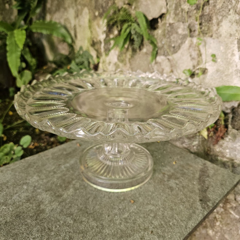 Bella alzata da torta in vetro pressato, stile liberty, prodotta in Inghilterra alla fine del XIX secolo, in epoca vittoriana.