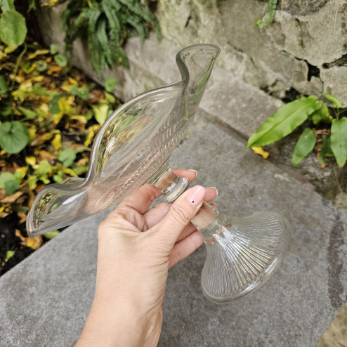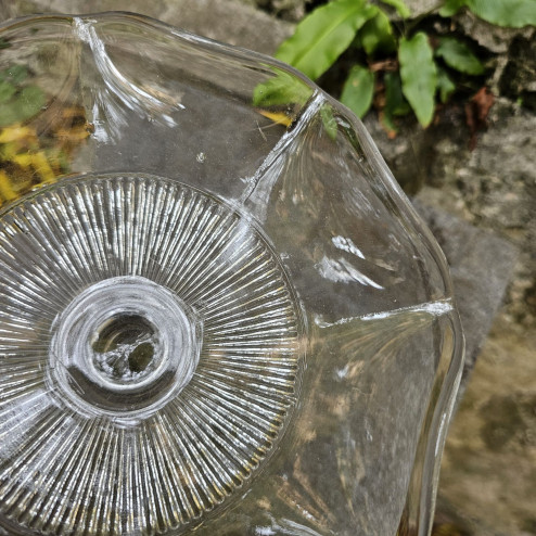 Il vetro, perfettamente trasparente e brillante, permette di apprezzare la lavorazione e riflette la luce in modo particolarmente gradevole. Ideale come centrotavola, per servire frutta o dolci, oppure come oggetto decorativo in una vetrina.