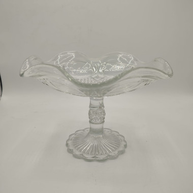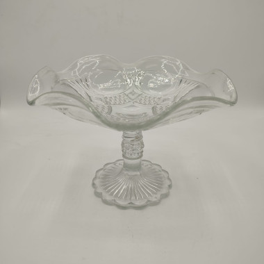 Piccola alzata a coppetta o "compostiera" con bordo ondulato in vetro pressato, più normalmente utilizzata come alzatina da dolci.