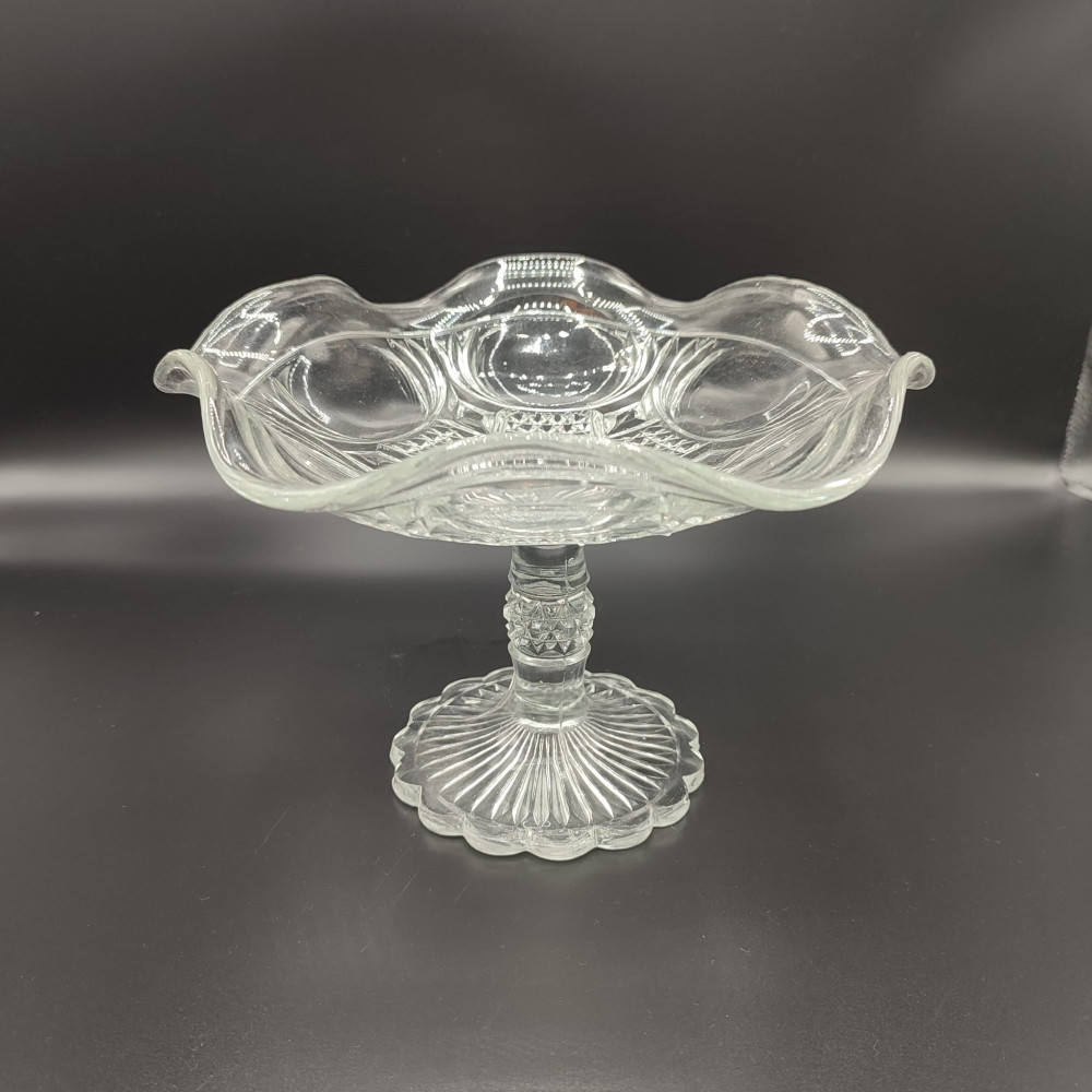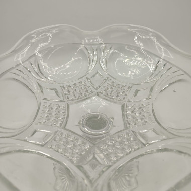 Bellissima alzata in vetro pressato inglese dal motivo ondulato della coppa.