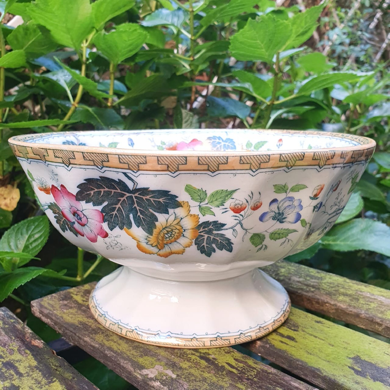 Bella e capiente coppa vittoriana in ceramica con piede centrale. Prodotta da Edge, Malkin & Co. tra il 1871 e il 1903.