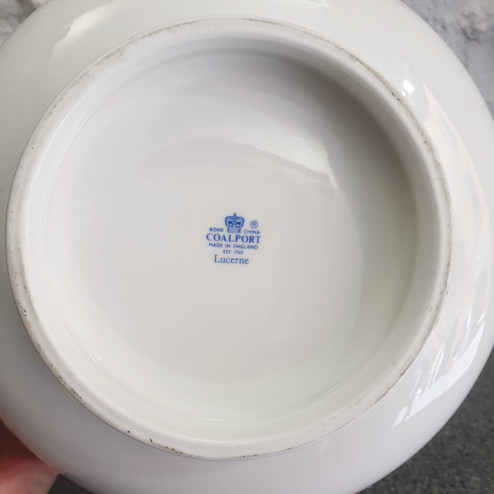 Grande coppa in porcellana finissima firmata Coalport, prodotta in Inghilterra con il decoro "Lucerne" negli anni '70.
