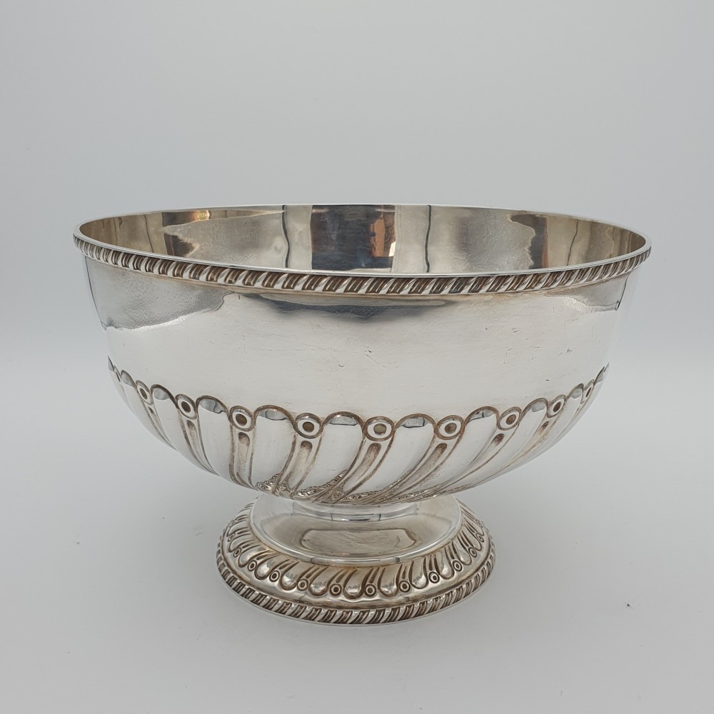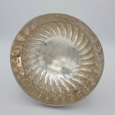 Bellissima coppa centrotavola in argento inglese sterling 925, prodotto a Birmingham nel 1903 dall'argentiere William Aitken. Il decoro della coppa, in inglese swirling gadroons è tipico del periodo tardo vittoriano / edoardiano e dona ricchezza all'oggetto senza però appesantirlo.