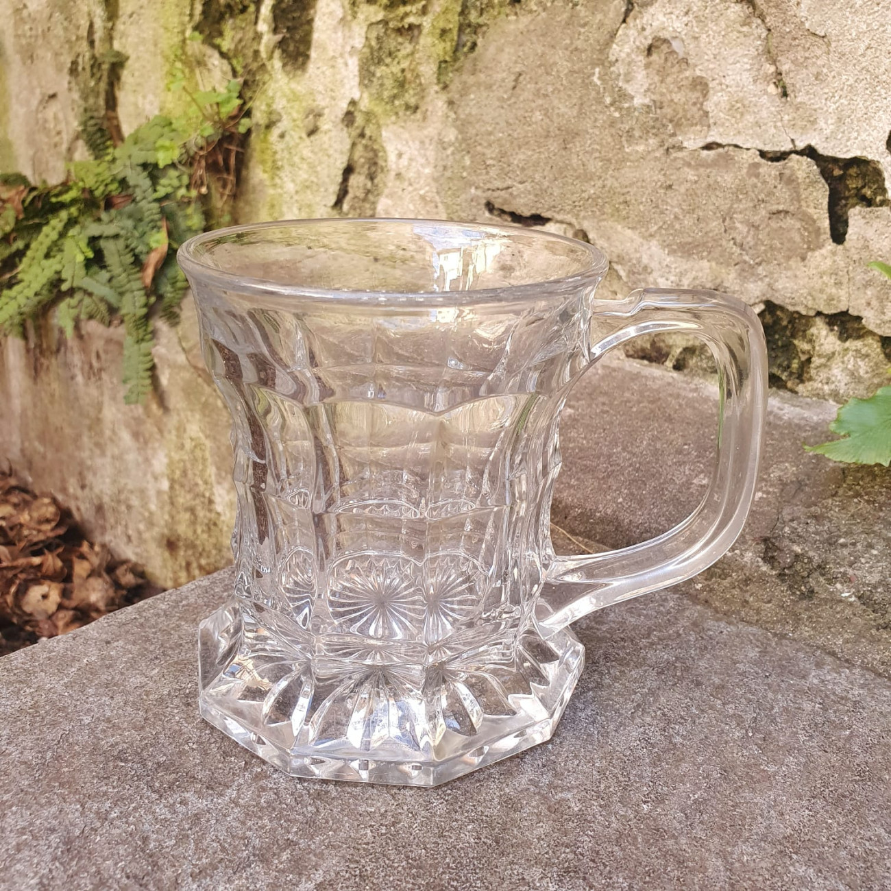 Boccale da birra da mezza pinta in vetro pressato inglese.