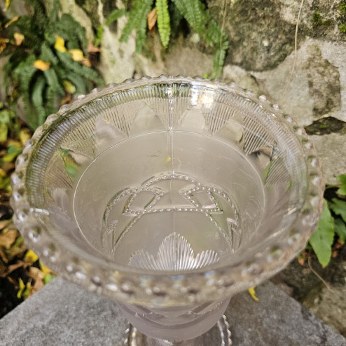 Vaso inglese in vetro pressato degli anni ’30, noto come celery vase, caratterizzato da una raffinata forma geometrica. Elegante e versatile, perfetto come vaso o centrotavola. Ottime condizioni.
