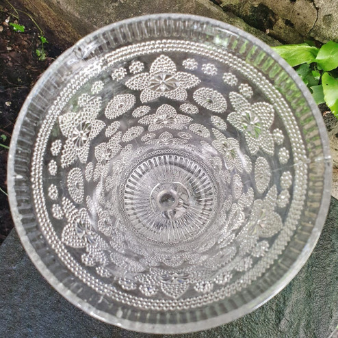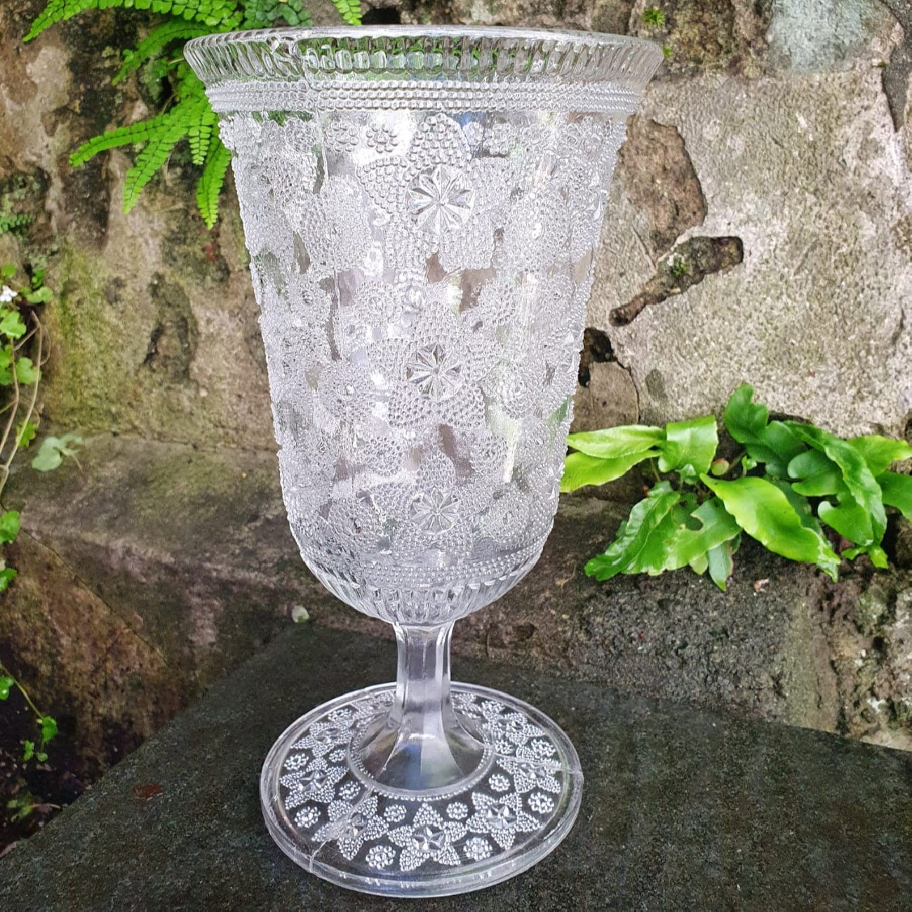 Capiente coppa porta zucchero vittoriana in vetro pressato, prodotta nella seconda metà del XIX secolo dalla famosa vetreria Davidson.