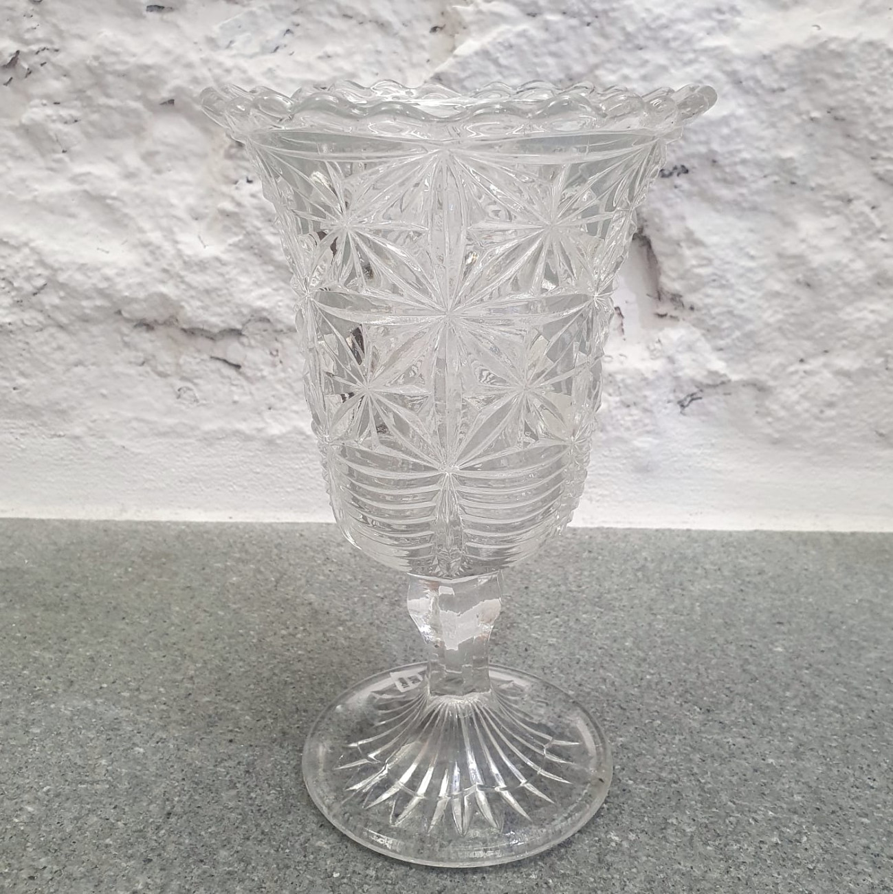 Vaso per sedani o "celery vase" in vetro pressato inglese, risalente alla fine dell'Ottocento (1880 circa), ovvero alla fine dell'epoca vittoriana.