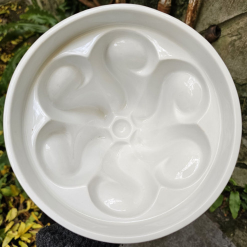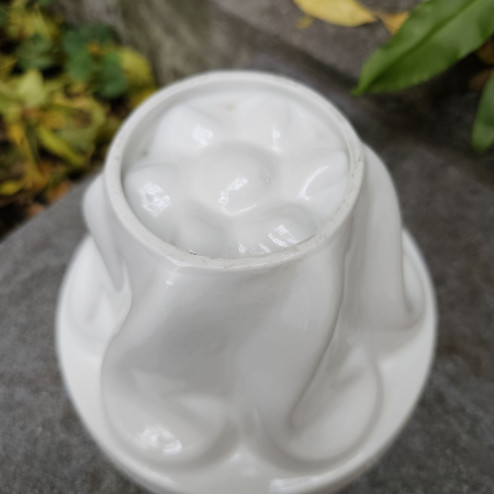 Splendido jelly mould inglese in ceramica bianca, prodotto da Shelley tra il 1910 e il 1930.