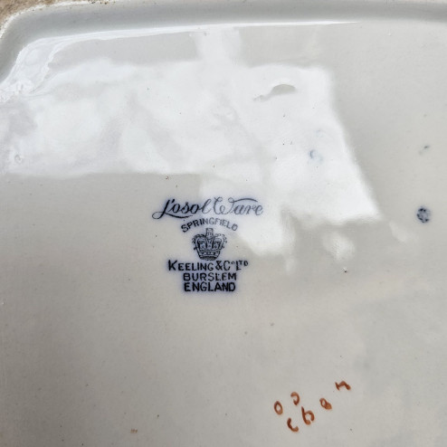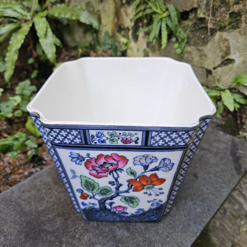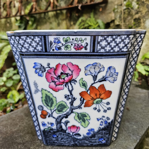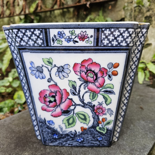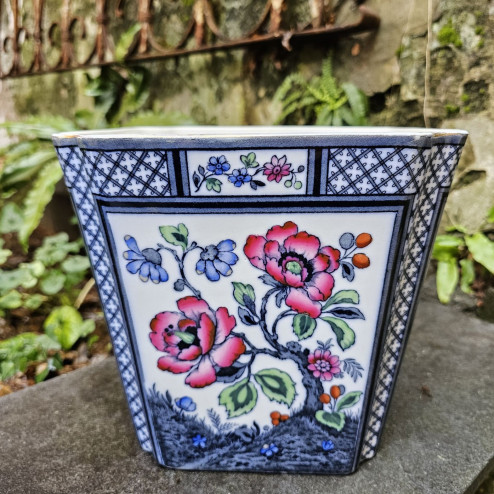 Cache-pot in ceramica inglese prodotto da Keeling & Co. nel periodo Losol Ware, anni ’20. Decoro Springfield stampato e rifinito a mano, in condizioni eccellenti.