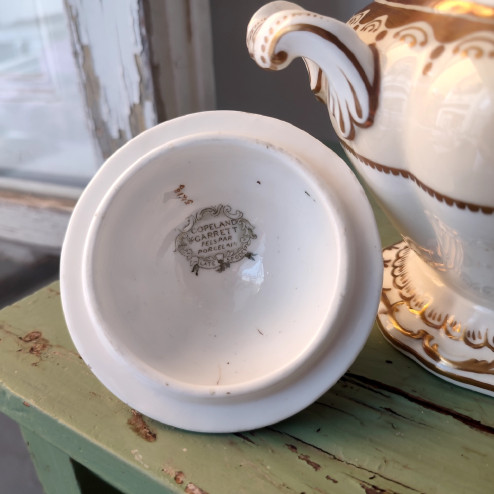 Il marchio, raro da trovare, è stampato sia sotto il coperchio che sotto la zuccheriera e riporta la dicitura: "Copeland & Garrett - Felspar Porcelain - Late Spode" mentre il numero del pattern scritto a pennello è 5418.