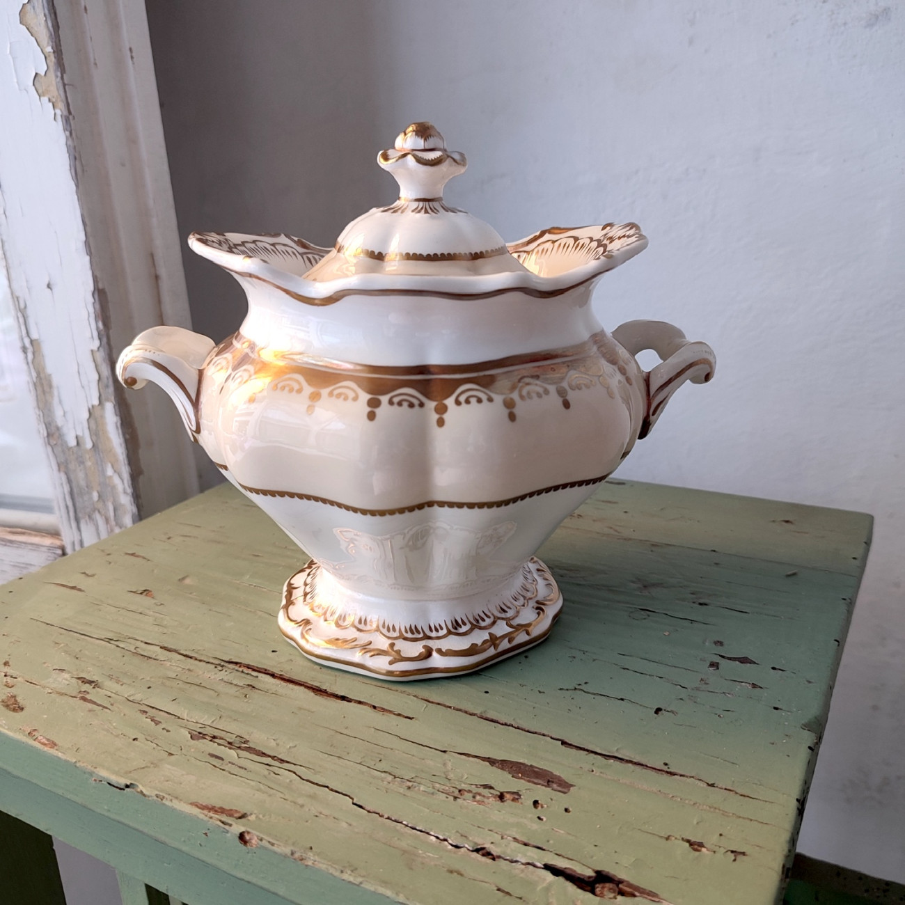 Grande zuccheriera con coperchio inglese (sucrière) in porcellana feldspatica, prodotta da Copeland & Garrett (Late Spode) nel 1834 circa.