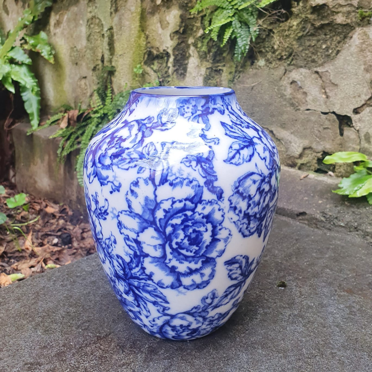 Il vaso è interamente decorato da un disegno floreale in un bel blu cobalto, pattern Cavendish.