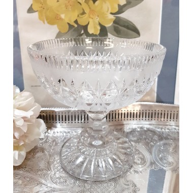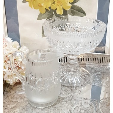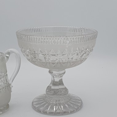 Lattiera vittoriana in vetro pressato e satinato. Ha un decoro geometrico che ricorda il più celebre cut glass.