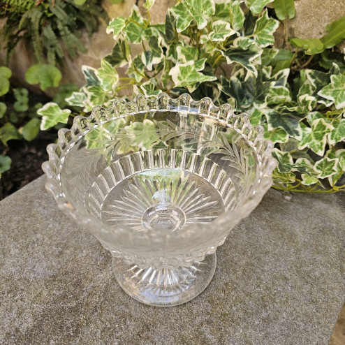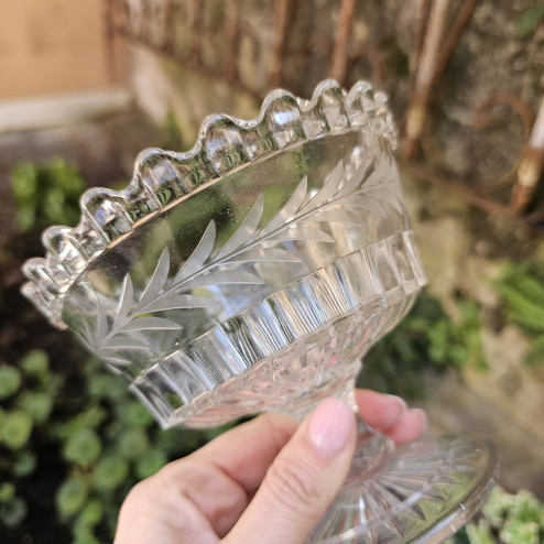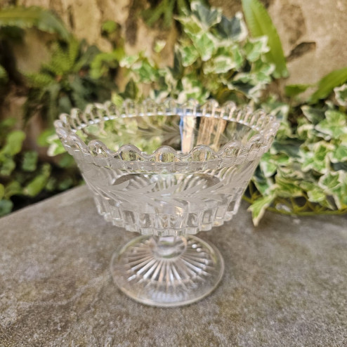 Elegante coppetta in vetro pressato inglese prodotta alla fine dell’Ottocento, in piena epoca vittoriana.