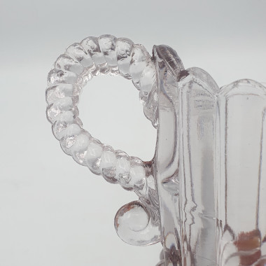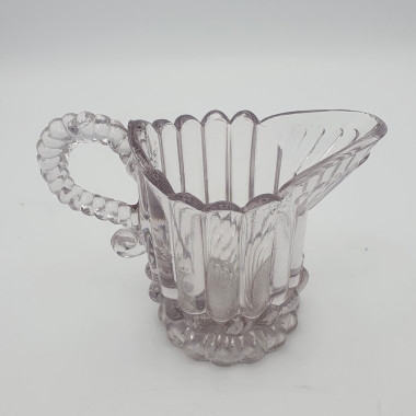 Lattiera vittoriana in vetro pressato e satinato. Ha un decoro geometrico che ricorda il più celebre cut glass.