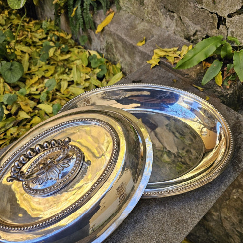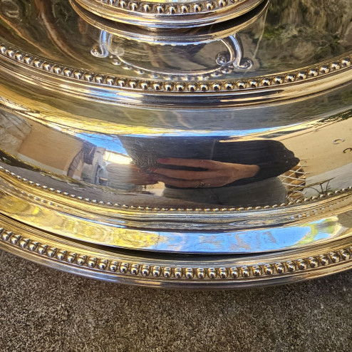 Grande e scenografica zuppiera inglese in sheffield plate, vintage.