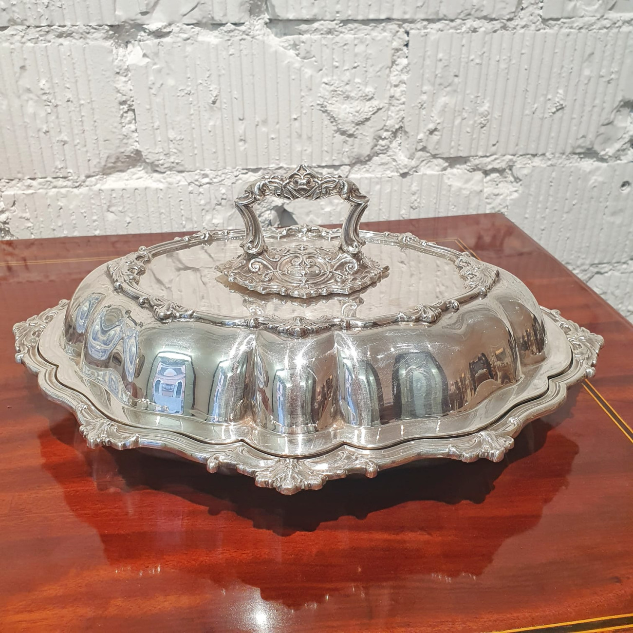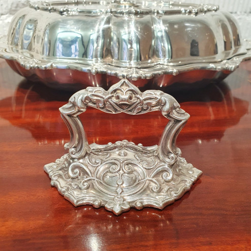 Grande e scenografica zuppiera inglese in sheffield plate, vintage.