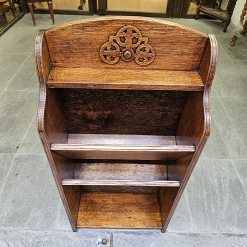 Questo piccolo porta riviste in rovere è un raffinato esempio di arredo inglese tra fine ’800 e inizi ’900, riconducibile al gusto Arts & Crafts, movimento che privilegiava la qualità dei materiali, la lavorazione artigianale e la semplicità delle forme.
