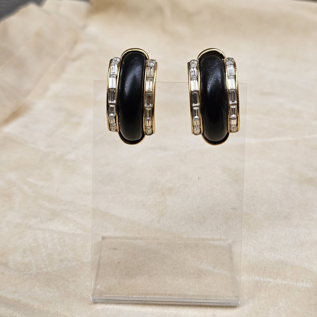 Raffinati orecchini vintage firmati Yves Saint Laurent, autentici bijoux couture risalenti alla prima metà degli anni ’80, periodo in cui la maison concepiva il gioiello come vero elemento architettonico dell’abito.