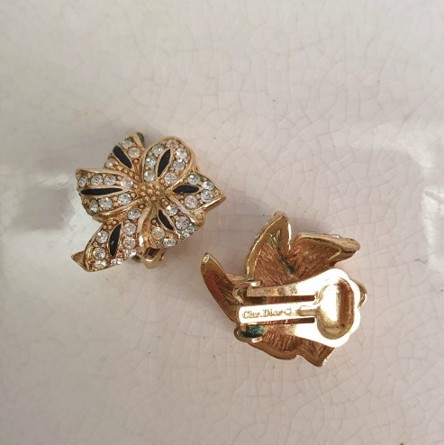 Orecchini a clip vintage firmati Dior, in lega metallica dorata.