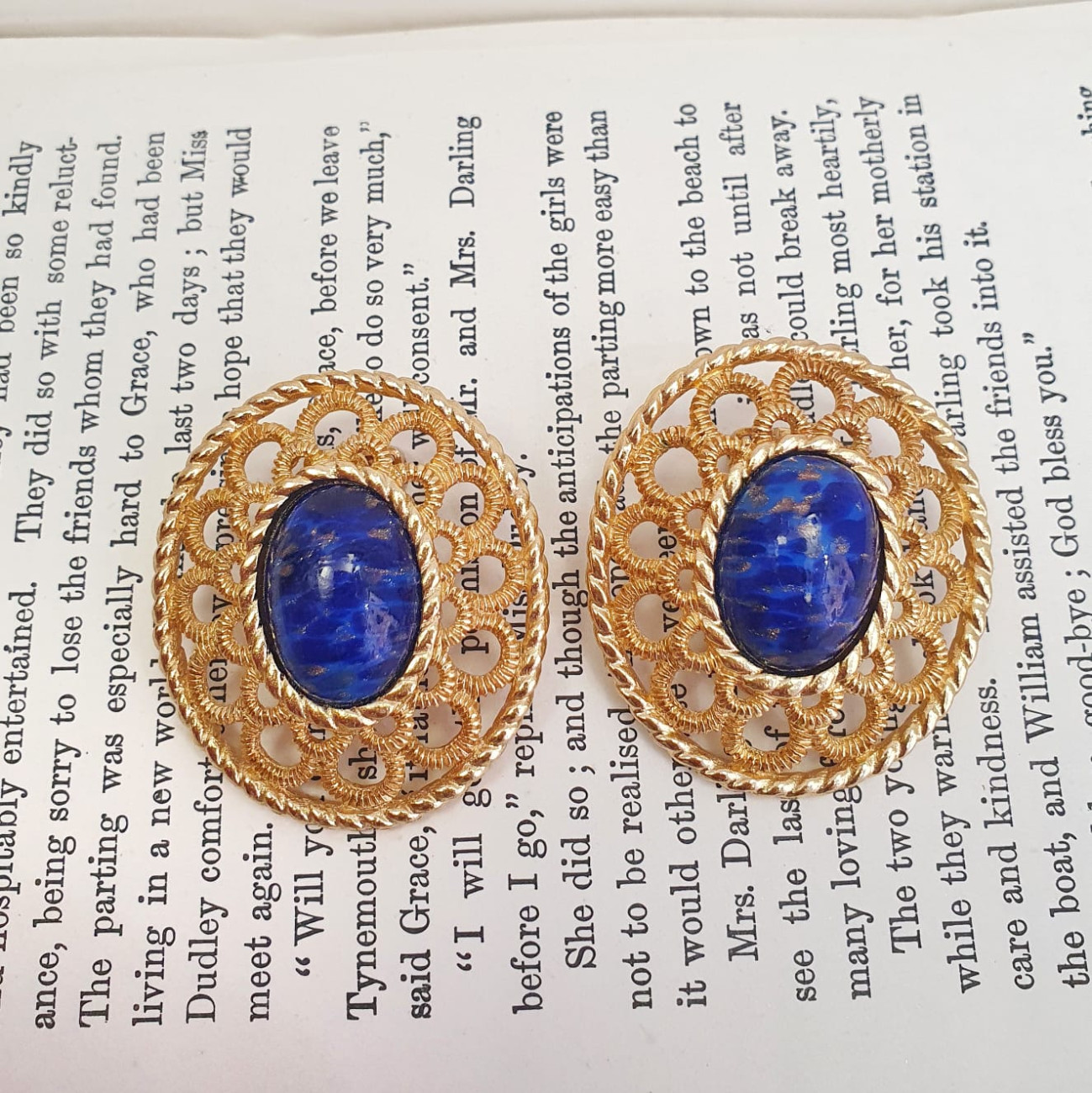 Di forma ovale, sono impreziositi al centro da una gemma blu e oro.