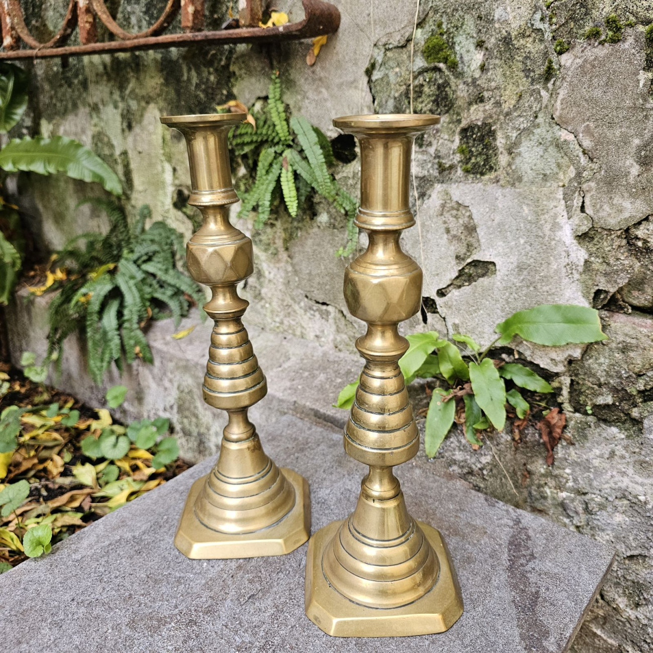 Una coppia importante, ideale per chi ama la luce calda del metallo antico e gli oggetti britannici di gusto vittoriano.