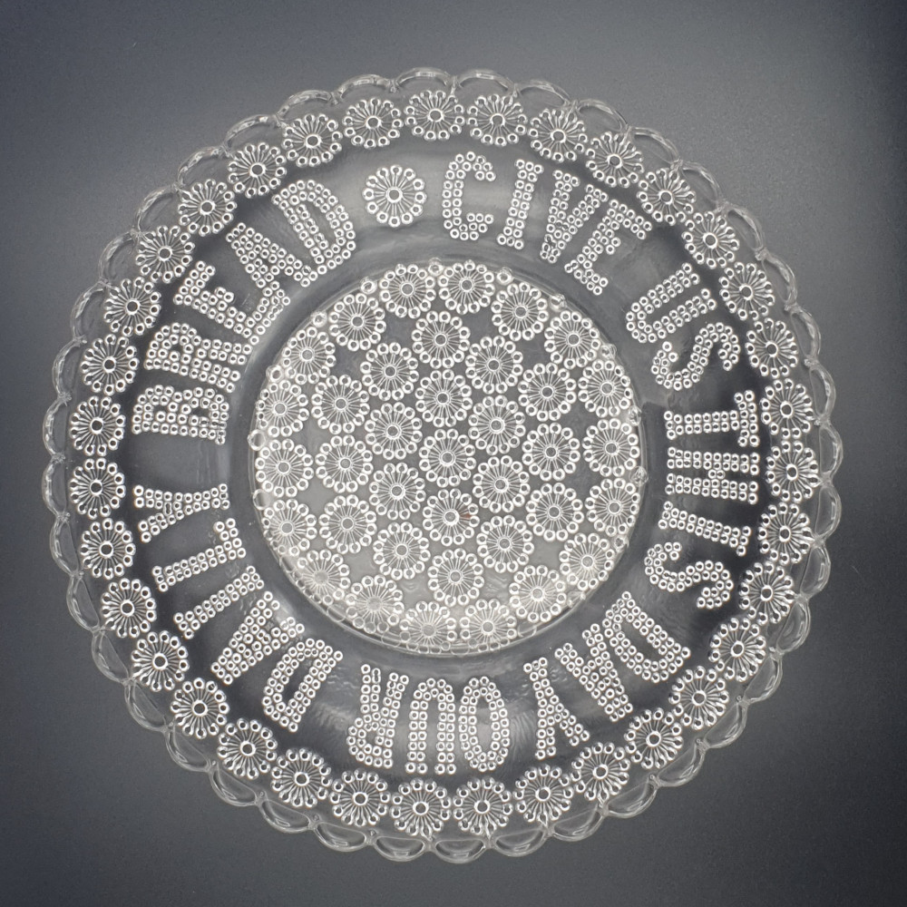 Piatto commemorativo in vetro pressato, prodotto in occasione dell'incoronazione di Re Giorgio VI avvenuta il 12 maggio 1937.