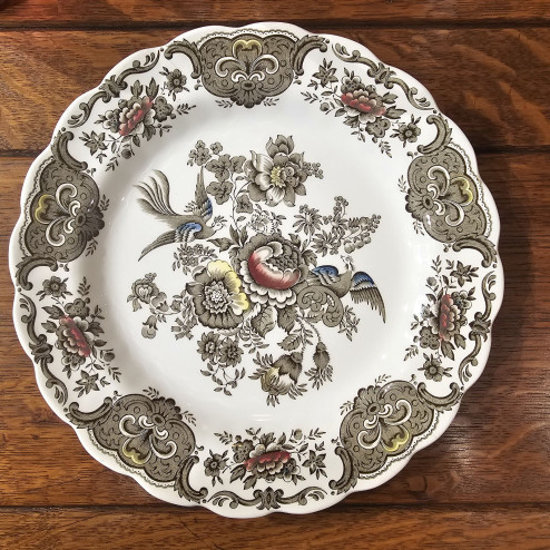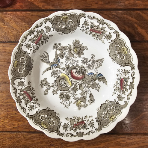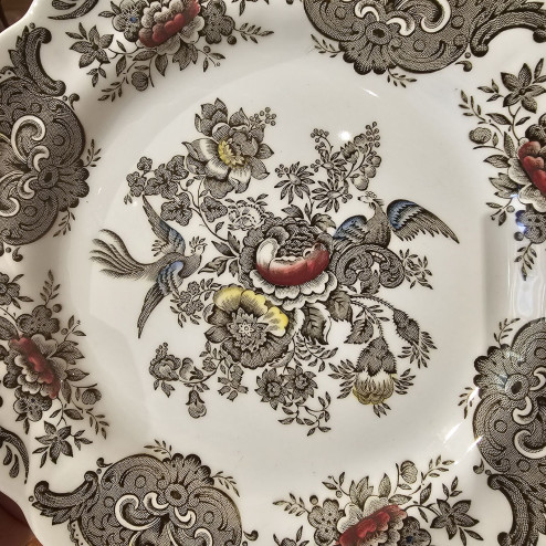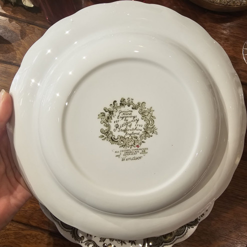 Il motivo Windsor fu la versione di Ridgway del popolarissimo decoro “Asiatic Pheasants”, uno dei più diffusi nella tradizione inglese del transferware. La manifattura produsse servizi da tè e da tavola completi con questo pattern, solitamente in verde monocromo, ma anche in varianti blu, marrone, rosa e nero. Alcuni esemplari venivano arricchiti da dettagli dipinti a mano.