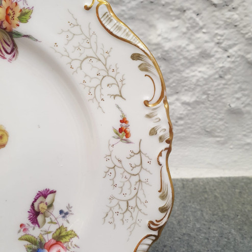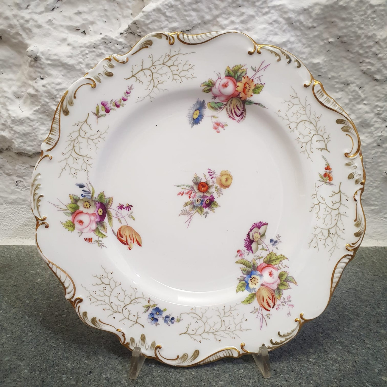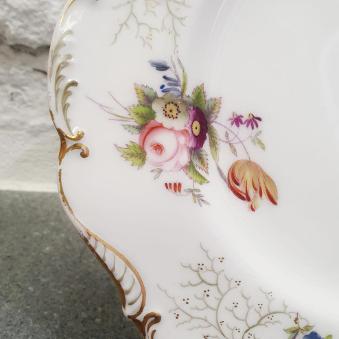 Bellissimo piatto vittoriano in porcellana dipinto a mano, prodotto dalla celebre manifattura inglese Coalport alla fine dell' Ottocento.