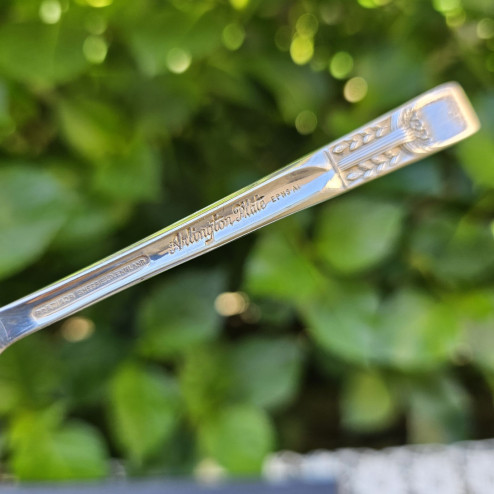 Raffinato servizio inglese di cucchiai da dolce in sheffield plate, prodotto dalla manifattura Arlington Plate e databile al 1953, come indicato dal numero di registro presente sul manico.