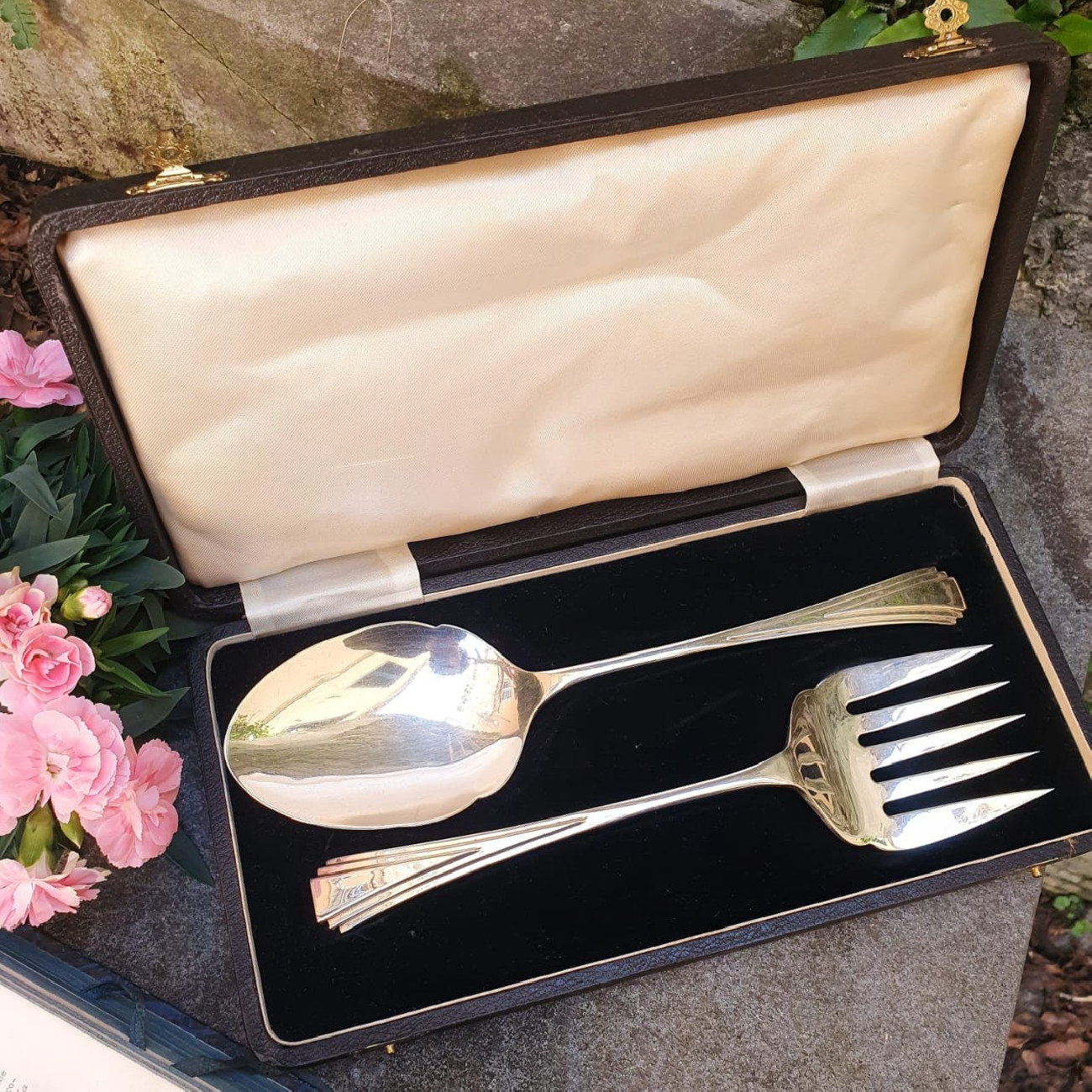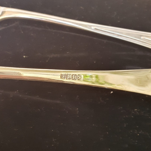 Coppia di posate da servizio in sheffield plate risalenti agli anni '30.