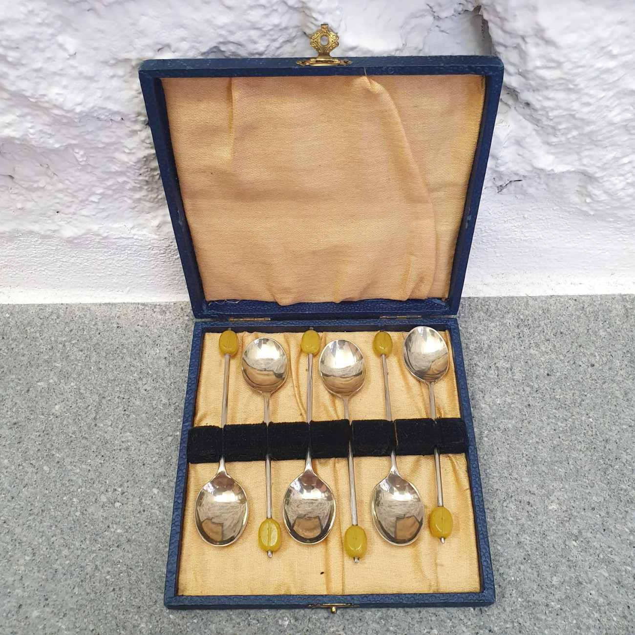 Set da caffè in sottile porcellana fine bone china composto da caffettiera, lattiera e zuccheriera e prodotto negli anni '30 da A. B. Jones & Sons a Longton. Il decoro è caratterizzato da un prato fiorito con delicati colori pastello, il tutto rifinito da un azzurro carta da zucchero su bordi e manici.
