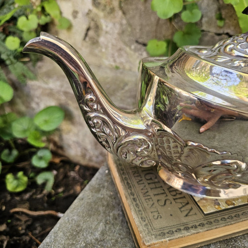 Elegante set da tè in sheffield plate inglese risalente agli inizi del Novecento.