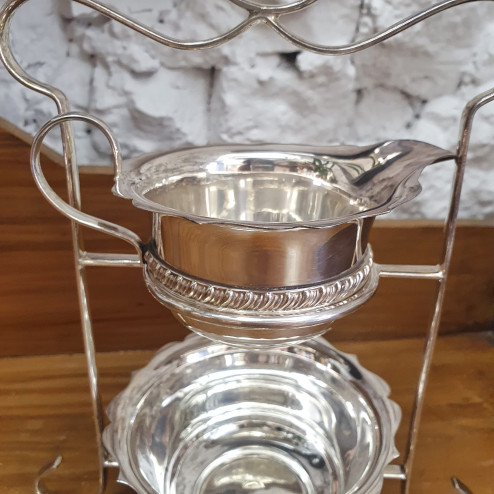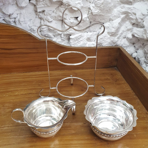 Elegante set lattiera e zuccheriera con stand, tutto in sheffield plate.