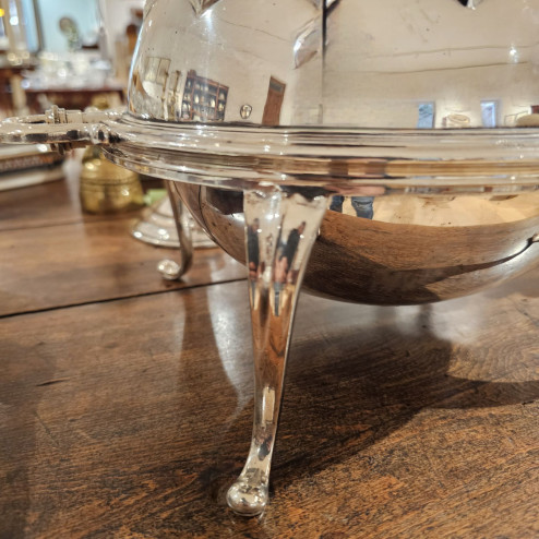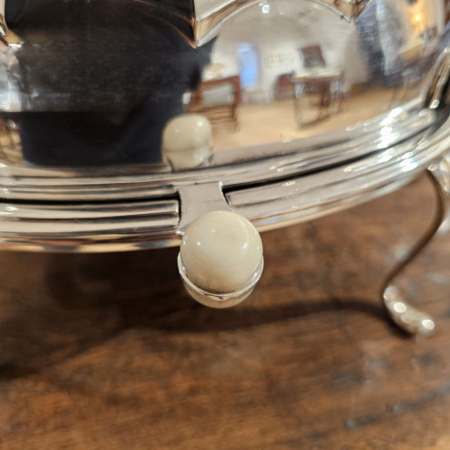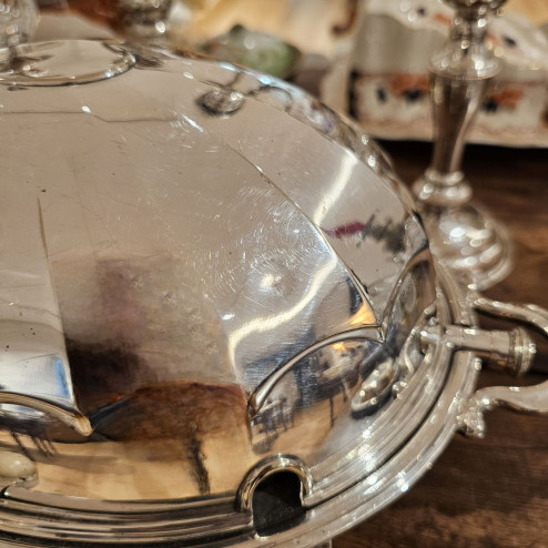 Questo elegante breakfast dish inglese in sheffield plate, registrato nel 1911, è un meraviglioso esempio di servizio da tavola d’epoca edoardiana, pensato per mantenere le vivande calde durante la colazione o i buffet.
