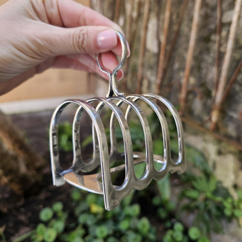 Il toast rack veniva utilizzato durante la colazione per servire le fette di pane tostato mantenendole separate, evitando che il vapore le rendesse morbide. Questo sistema permetteva di conservare il toast caldo e croccante più a lungo.
