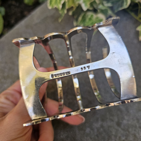 Raffinato toast rack in sheffield plate prodotto in Inghilterra negli anni ’30, oggetto tipico della tradizione della tavola inglese.