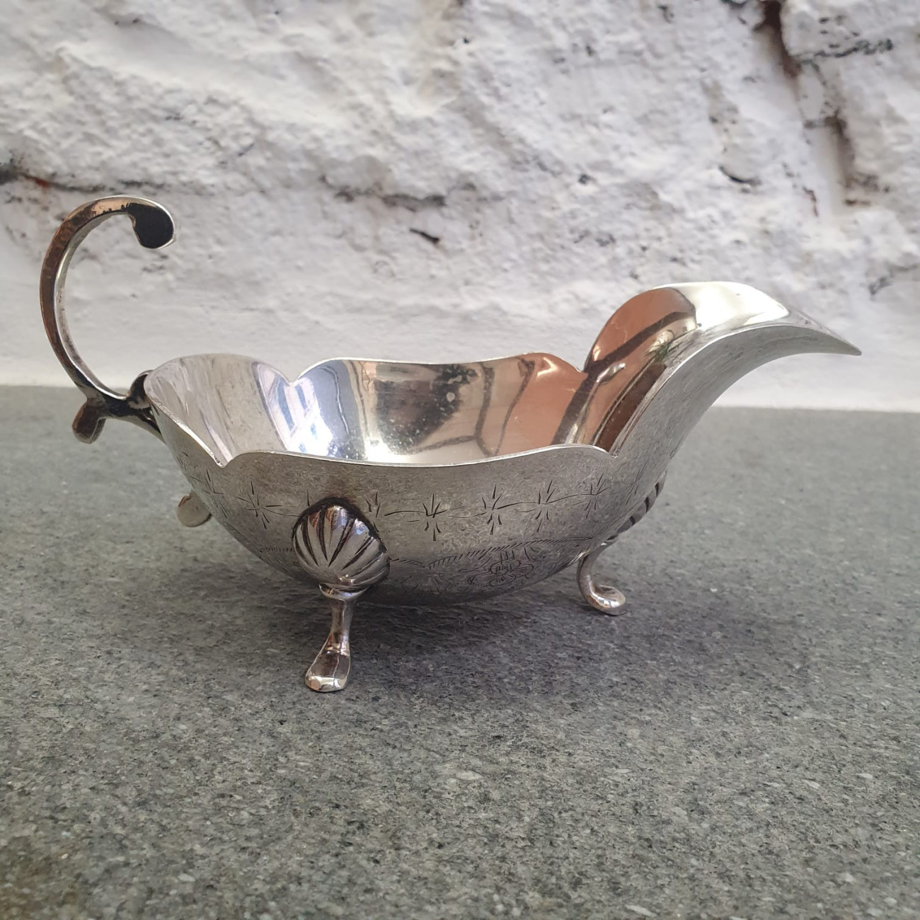 Salsiera a barca in sheffield plate inglese risalente agli anni '40.