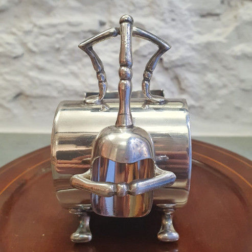 Questa elegante zuccheriera a elmo in Sheffield plate risale all’epoca edoardiana (1900-1910).