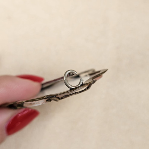 Il pinchbeck, lega metallica storicamente utilizzata tra XVIII e XIX secolo come elegante alternativa all’oro, presenta una patina calda e naturale, tipica dei gioielli autenticamente antichi.