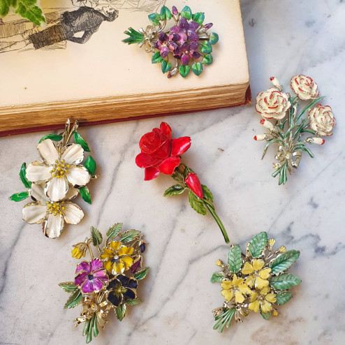 Spilla di bigiotteria vintage inglese della serie "Birthday Flower Brooch", prodotta dal celebre marchio Exquisite.