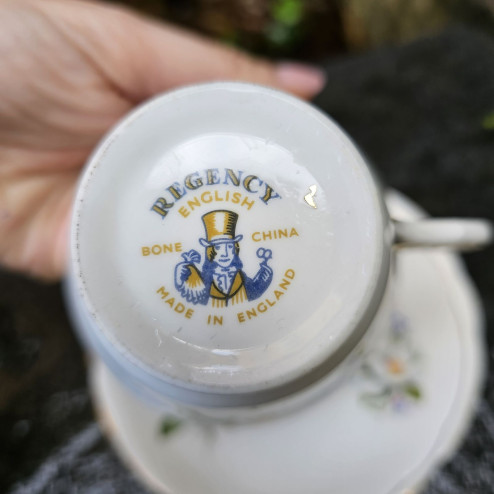 Questo set è stato realizzato da Regency China Ltd, una manifattura con sede nello Staffordshire, cuore della produzione ceramica inglese, intorno agli anni '60. La porcellana "Bone China" utilizzata conferisce al set la tipica traslucenza e il colore bianco brillante che caratterizzano i pezzi di alta qualità britannici.