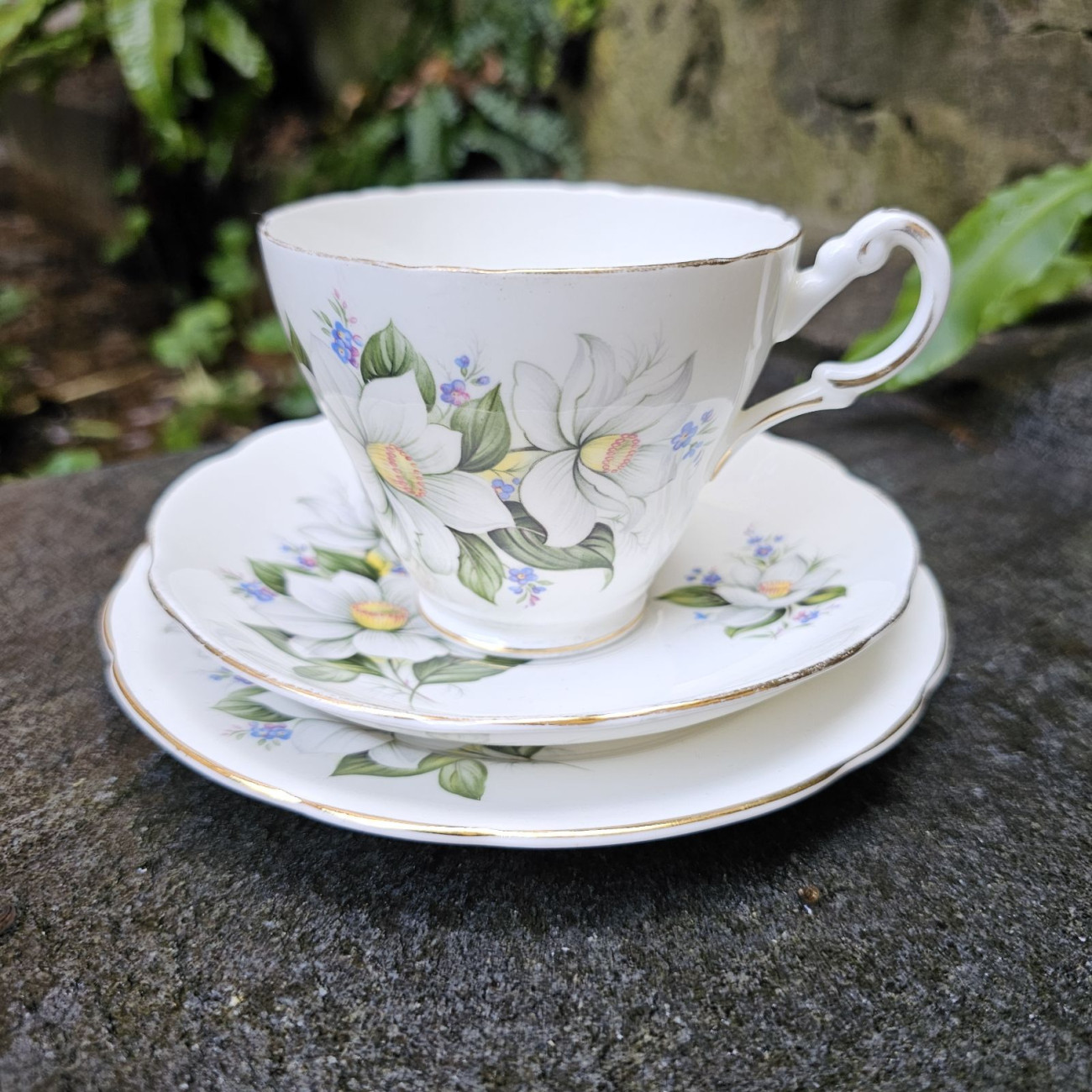 Composizione: Il "trio" include la tazza da tè, il piattino per la tazza e il piatto piano più grande per servire dolci o biscotti, permettendo un servizio completo e formale.