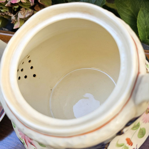 Caffettiera alta e capiente Copeland Spode (1970–1980) nel celebre pattern "Chinese Rose". Ceramica inglese decorata a fiori, in ottime condizioni.