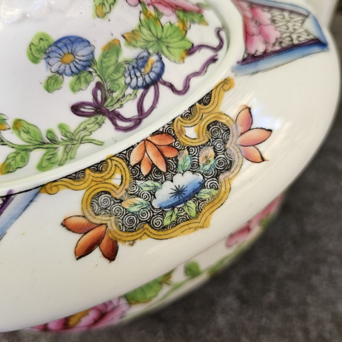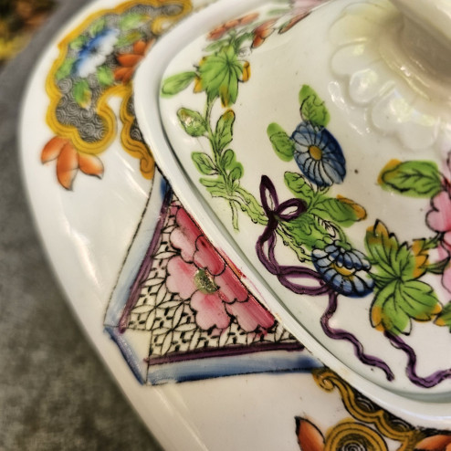 Si tratta di un pezzo raffinato, ricco e scenografico, ideale per chi colleziona porcellane inglesi antiche o desidera un elemento caratteristico per una tavola in stile vittoriano.