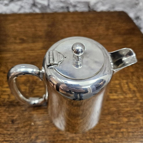 Piccola caffettiera inglese in Sheffield plate, prodotta negli anni ’30 dalla ditta Hamilton, Laidlaw & Company di Sheffield, rinomata per la produzione di articoli per hotel, ristoranti e servizi navali.